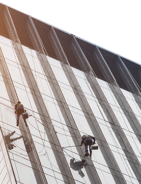 Os nossos colaboradores certificados em trabalhos em altura, executam a limpeza de vidros e fachadas de edifícios de forma eficaz.