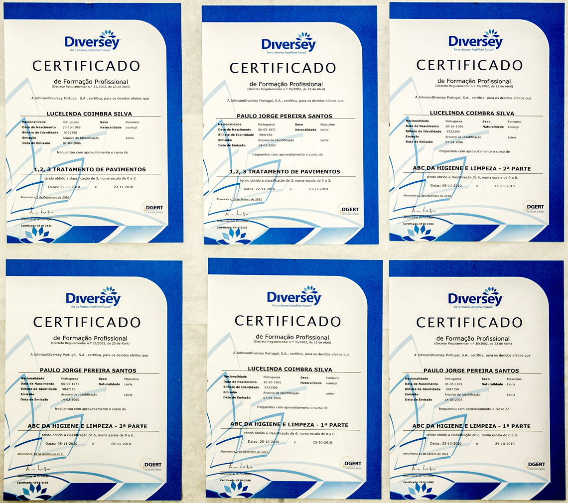Todos os produtos utilizados nos nossos serviços (entre outros, Diversey Lever) assim como as máquinas e materiais de limpeza são da nossa inteira responsabilidade, correspondendo sempre às normas e legislações em vigor.